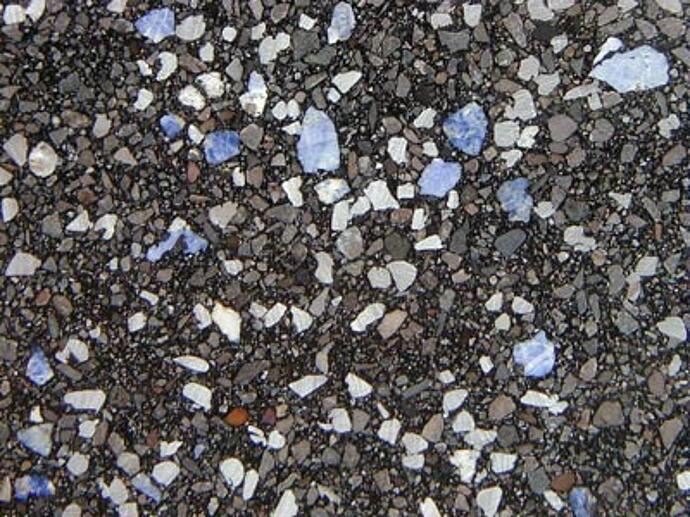Tauchen Sie ein in die Tiefe von dem edelsten BituTerrazzo® "Inka Blau" – ein prachtvolles Muster mit natürlichem blauen Gestein, das Eleganz und Einzigartigkeit ausstrahlt.